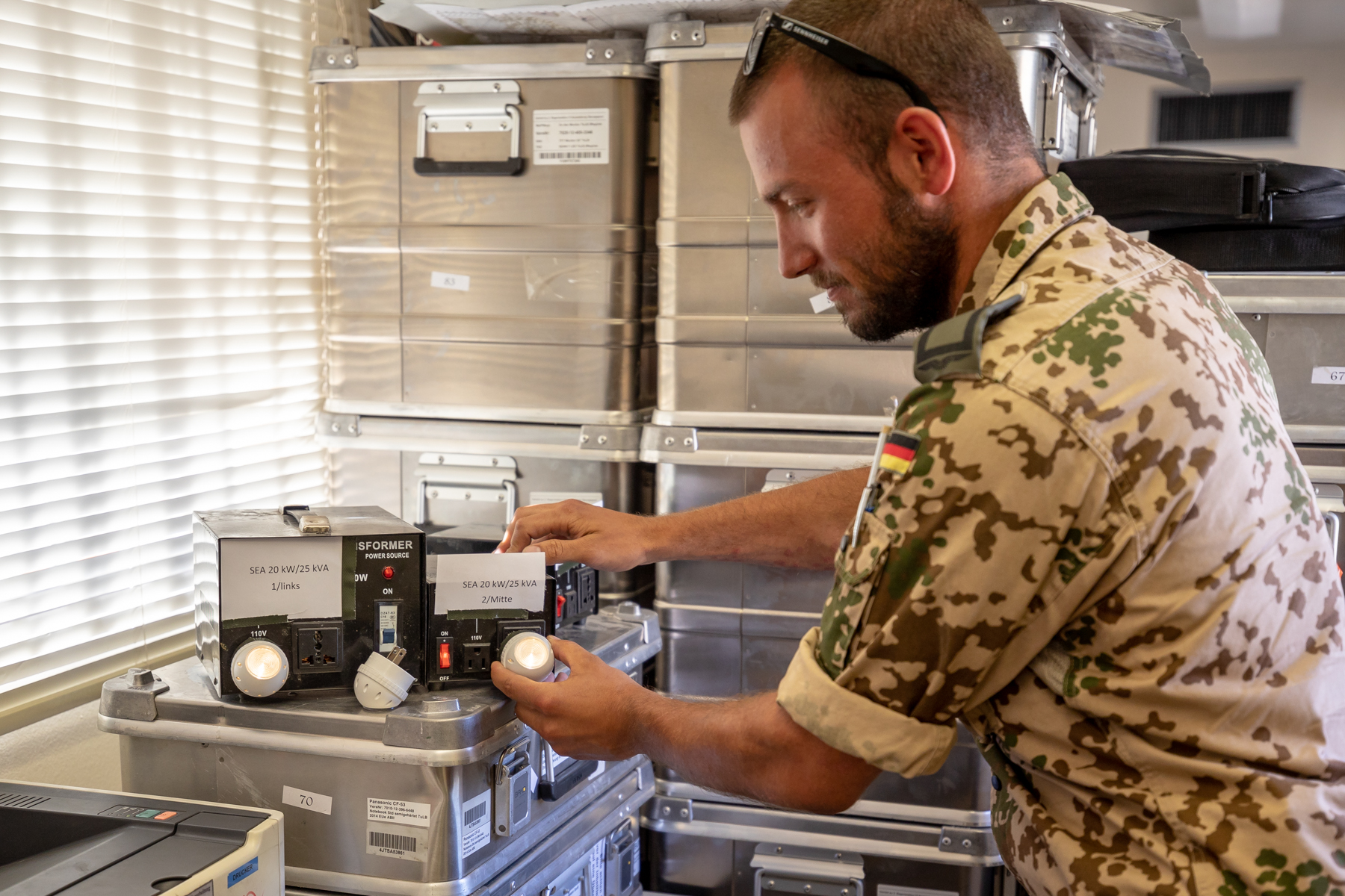 Die Tage während der Übung beginnen für einige schon früh morgens um drei Uhr. Hauptfeldwebel Simon P. und seine Kenntnisse sind jetzt noch nicht gefragt. Deshalb beginnt sein Arbeitstag zwei Stunden später. Um diese Zeit fährt er vom Hotel, am Rande von Las Vegas, auf den Stützpunkt hinaus. Dort stehen die Nörvenicher Eurofighter bereits vorbereitet für den nächsten Übungsflug. Der Elektroniker beobachtet die Startvorbereitungen, um bei auftretenden Problemen an seinem System direkt zur Stelle sein zu können.
