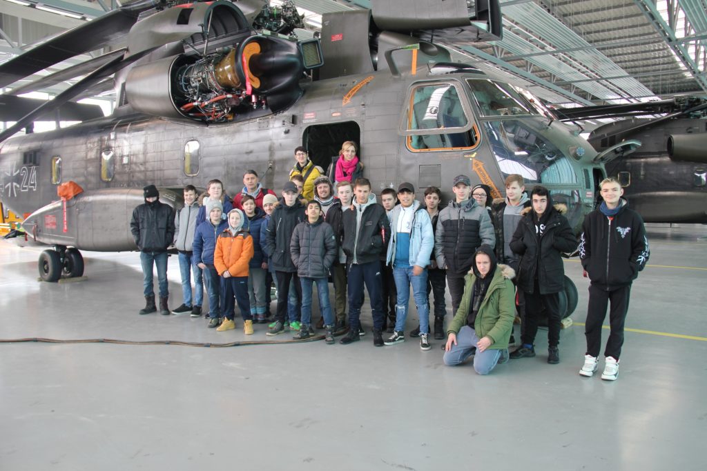Für 21 Schüler ging es zum Hubschraubergeschwader 64 nach Laupheim. Statt dem gewohnten Lernbetrieb waren die Jugendlichen einen Tag lang Teil der Luftwaffe.