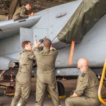 Für viele Soldatinnen und Soldaten der Instandsetzungsstaffel und technischen Gruppe des Taktischen Luftwaffengeschwader 31 „Boelcke“ war dies die erste Zusammenarbeit mit Spanien. Für sie ist es etwas Besonderes: die Combined Maintenance. Es ist die gemeinsame technische Arbeit der beiden Eurofighter-Nationen. Gelebt wird sie beispielsweise beim Air Policing im Baltikum oder auf Übungen wie jetzt bei Arctic Defender. Vorgehensweisen auszutauschen und sich gegenseitig zu unterstützen, das sind die Aufgaben deutscher und spanischer Soldaten, um die Eurofighter gemeinsam für multinationale Übungen und Einsätze vor- und nachzubereiten. Dafür arbeitet das technische Personal, welches aus 50 Spaniern und ca. 150 Deutschen besteht, an den tagesabhängigen Störbehebungen – je nachdem, was der Maschine fehlt. Durch die gleichen Flugzeugmuster A400M und Eurofighter ist es möglich, Personal und Material zu teilen.