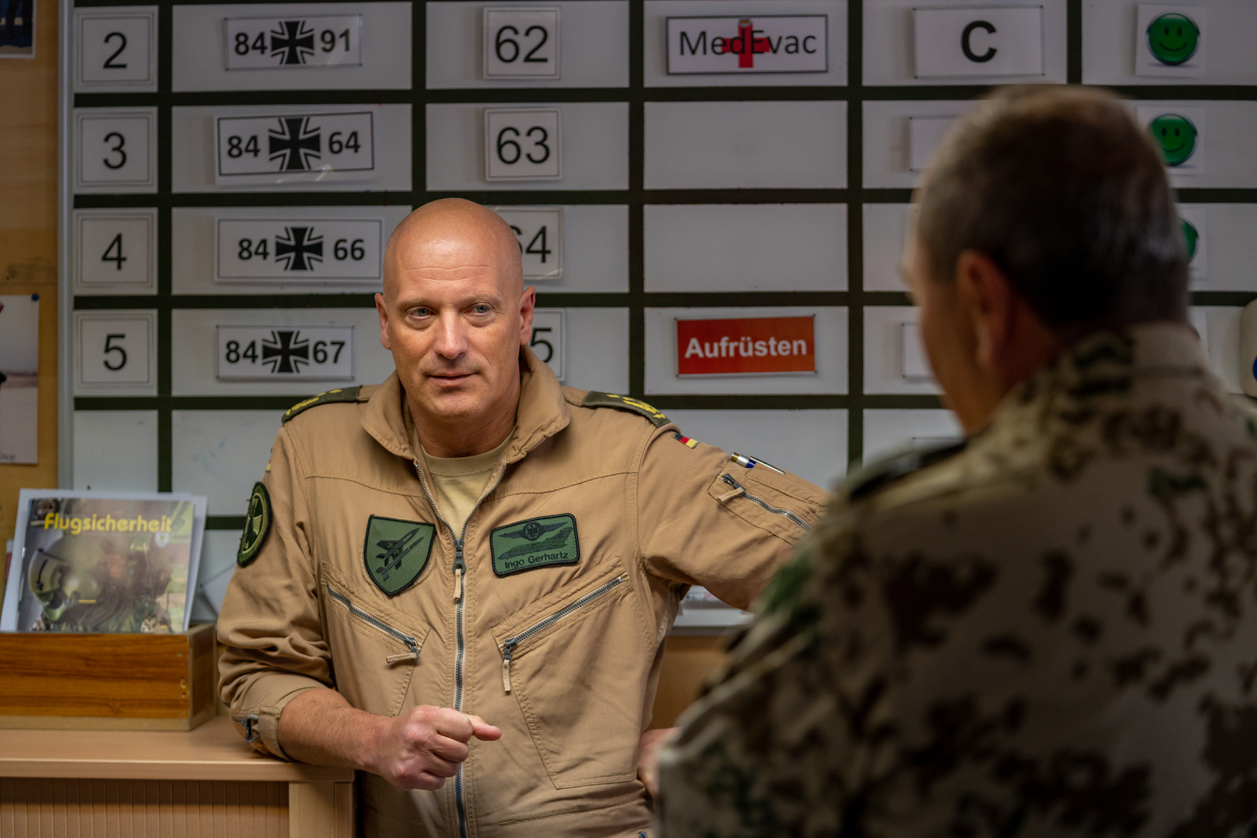 Der Inspekteur der Luftwaffe, Generalleutnant Ingo Gerhartz, ließ es sich nehmen selbst in Laage vorbeizukommen. (Quelle: Luftwaffe/Kevin Schrief)