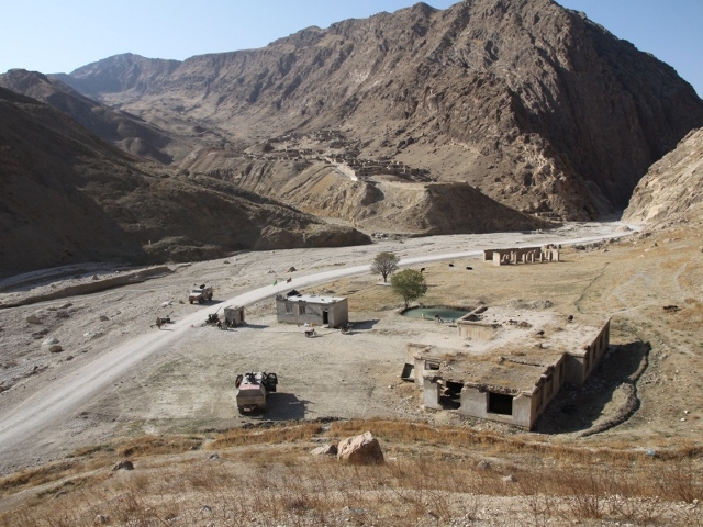 07:30 Uhr im Camp Marmal. Langsam kämpft sich die Sonne über den Kamm des Marmal-Gebirges. Die Fahrzeuge und die Soldaten sind bereit für den Abmarsch. Nach einer kurzen Koordinierung durch den Zugführer Oberleutnant Andreas T. geht es los. Nach 50 Minuten Fahrzeit gelangt die Patrouille an ein Steintor, dessen Aussehen und Struktur aufgrund des hohen Alters sehr gelitten hat. Es ist der Eingang zu einem eindrucksvollen Bergmassiv. Kurze Zeit später erreichen die Soldaten ein Tal, umgeben von hohen Bergzügen. Ein kleines Dorf schmiegt sich an einen Bergkamm. Unten im Tal befindet sich ein Checkpoint der afghanischen Sicherheitskräfte. Das ist ihr Einsatzort für die nächsten 32 Stunden.