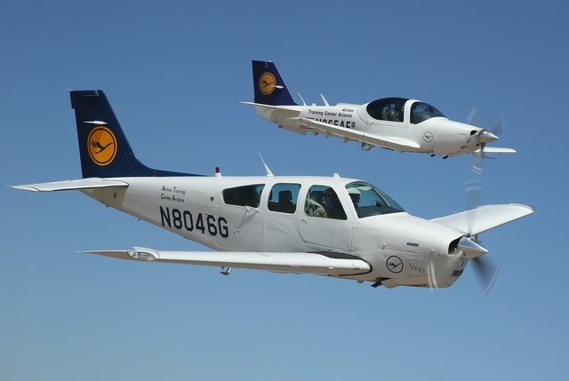 Bei der 3. Deutschen Luftwaffen Ausbildungsstaffel USA in Goodyear / Arizona machen Anwärter für den Fliegerischen Dienst in der Luftwaffe ihre ersten Erfahrungen in der Fliegerei. „Raven 5 cleared for Takeoff“ – mit diesem Funkspruch beginnt für Fähnrich Felix Gerwig (23) das Abenteuer Fliegerei. Rechts von ihm sitzt Fluglehrer Major Peter Kopp (40), der ihn auf diesem Flug mit der Grob 120A begleitet. Die einmotorige Propellermaschine hat vom Kontrollturm des Goodyear Municipal Airport die Startfreigabe erhalten. Es ist früh am Morgen, die Sonne steht noch tief am Horizont und der Himmel erstrahlt in tiefem Blau. Auf dem Programm dieses gut eineinhalb Stunden dauernden Ausbildungsfluges stehen unterschiedliche Flugmanöver, wie Steilkurven, Langsamflug oder Trudeln. Im Übungsgebiet südlich von Goodyear sollen dann auch noch Platzrunden und Landungen auf dem kleinen Landeplatz „Mobile“ in der Wüste durchgeführt werden. Zum Schluss müssen dann auch noch Notverfahren durchgespielt werden. Alles ist auf der Mission Card festgehalten, die für jeden Flug genau beschreibt, was der Flugschüler beherrschen muss.