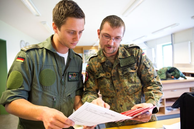 Sebastian hat mit der Segelfliegerei angefangen. „Da war ich 16 Jahre alt. Bei der Musterung wurde ich gefragt, ob ich mein Hobby nicht zum Beruf machen will. Das war für mich eine tolle Perspektive.“ Nach sei-nem Abitur führte ihn der Weg zu seinem Wehrdienstberater. „Hier habe ich eine prima Unterstützung bekommen. Gerade im Hinblick auf die Bewerbungen.“ Der Einstellungstest war sehr fordernd. Der Weg ins Cockpit führt bei der Bundeswehr über die Eignungsfest-stellung an der Offizierbewerberprüfzentrale (OPZ) in Köln. In dieser drei Tage dauernden Phase I der Eignungsfeststellung werden grundlegende Fähigkeiten wie Leistungsbereitschaft, Ausdauer, Flexibilität, Initiative, Teamgeist, Kameradschaft, Disziplin, Verantwortungsbewusstsein und körperliche Belastbarkeit bewertet. „In der Phase II bin ich auf meine psychomotorisch-funktionalen Grundanlagen getestet worden. Dann erfolgten die flugmedizinischen Untersuchungen in denen ich auf Herz und Nieren untersucht wurde.“ Diejenigen Bewerber, die auch die medizinische Hürde geschafft haben, können dann einen Termin für die Phase III vereinbaren. Dies ist dann die fliegerische Lernprobe. Sebastian hat das alles mit Bravour gemeistert. Seine spätere Ausbil-dung absolvierte er auch im amerikanischen Goodyear. Fünf Monate war er an der Air Force Academy und eine weitere zweijährige Ausbildung an der Lufthansa Flight School sorgten dafür, dass er heute im Cockpit sitzt. „Wenn ich meine ganzen Ausbildungen Revue passieren lasse, dann waren es bestimmt weit über 30 Prüfungen, die ich bestehen musste. Sowohl theoretisch als auch praktisch.“ „Das schönste Erlebnis war sicherlich das Empfangen meiner Flugzeugführer-Schwingen. Seit dem Zeitpunkt wurde ich nicht mehr als Flugschüler sondern als Co-Pilot begrüßt. Das war schon sehr bewegend für mich.“