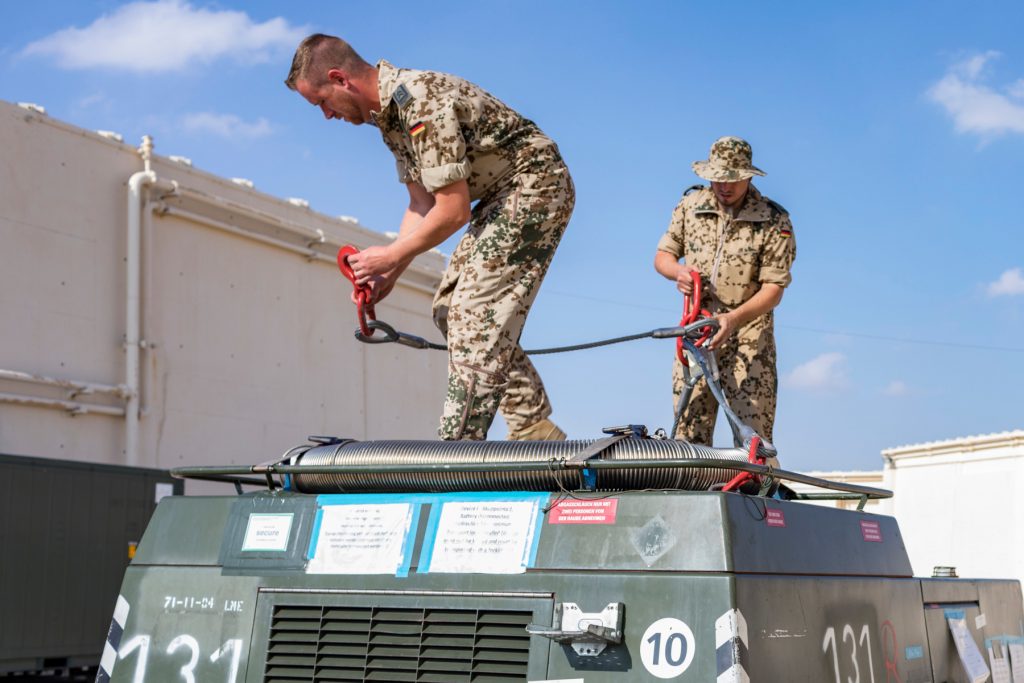 Die schweißtreibende Arbeit trübt jedoch nicht die Stimmung der Beiden. Es ist ihnen deutlich anzumerken, wie gerne sie ihren Job ausüben und wie eingespielt sie sind. „In Deutschland ist unsere Fachgruppe wesentlich größer. Das liegt an dem ständigen Flugbetrieb und an der großen Anzahl an Gerätschaften. Durch unsere Ausbildung und unseren Erfahrungen von anderen Kommandos sind wir alle sehr gut aufeinander abgestimmt. Daher ist es uns bei solchen Übungen auch möglich, zu zweit die Arbeit gemeinsam zu stemmen“, sagt Stabsunteroffizier Busch.