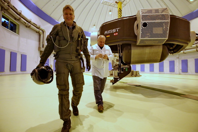 Das markante kuppelförmige Gebäude, in mitten der kleinen bewaldeten Bundeswehrliegenschaft nördlich von Dresden, beherbergt eine der beeindruckendsten Anlagen beim Flugphysiologischen Trainingszentrum der Luftwaffe, die Humanzentrifuge (HZF). Mit ihrem 9,5 Meter langen Arm kann das Cockpit mit eingebautem Sichtsystem eine maximale Radialbeschleunigung von 15 G (15-fache Erdschwere) bei einer Zuwachsrate von 13 G pro Sekunde erzeugen und gehört damit zu den modernsten Anlagen weltweit. „Wir können so auftretende G-Belastungen moderner Kampfflugzeuge realitätsnah simulieren. Gerade die Zuwachsraten pro Sekunde sind interessant für die Piloten, denn Jets der vierten Generation können durch ihre aerodynamischen Fähigkeiten in kurzer Zeit sehr viele G-Kräfte aufbauen“ erklärt Oberstabsarzt Dr. Ralf Mörlin (53), stellvertretender Leiter der Flugphysiologischen Ausbildung in Königsbrück und fährt fort: „Mit Einführung des Eurofighter wurde es wichtig den Piloten eine Trainingsmöglichkeit zu geben, um Lastvielfache unter sicheren Bedingungen am Boden erfahren zu können. Die Piloten müssen dabei nachweisen, dass sie neun G für 15 Sekunden aushalten können, ohne Einschränkung der Handlungsfähigkeit. Das ist Hochleistungssport.“