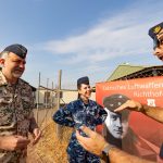 Der Chef der deutschen Luftwaffe, Generalleutnant Ingo Gerhartz, zeigt seinem indischen Amtskollegen Marshal Vivek Ram Chaudhari bei der Übung Pitch Black 2022 in Australien die deutschen Eurofighter