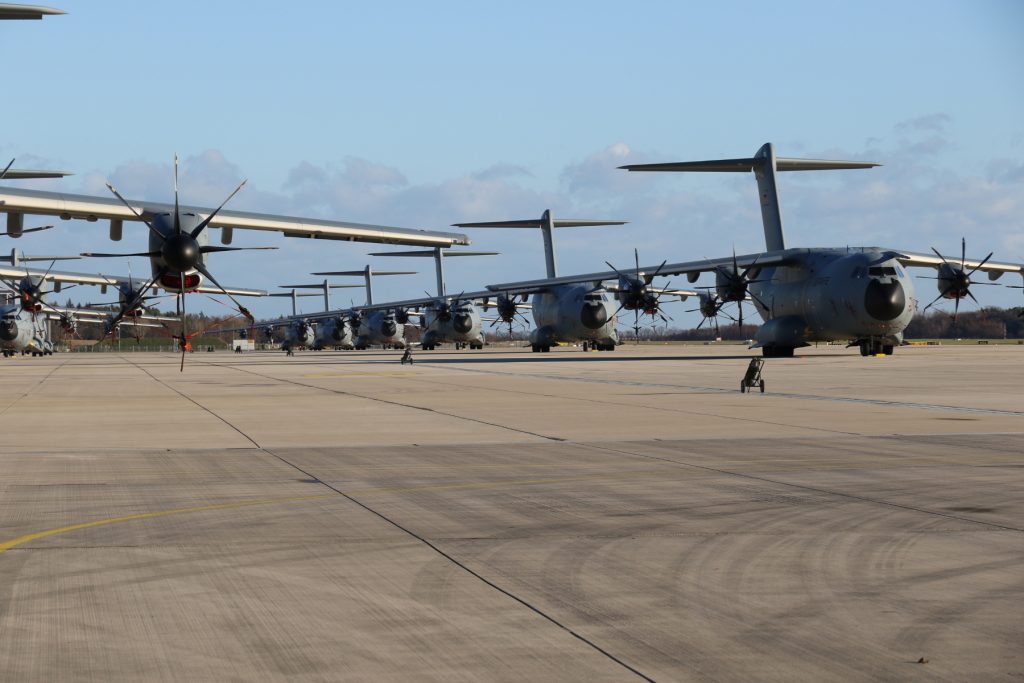 In den nächsten Tagen wird der 25. A400M auf dem Fliegerhorst in Wunstorf zur Flotte dazu stoßen. Er wurde bereits durch die Bundeswehr von der Industrie abgenommen.
