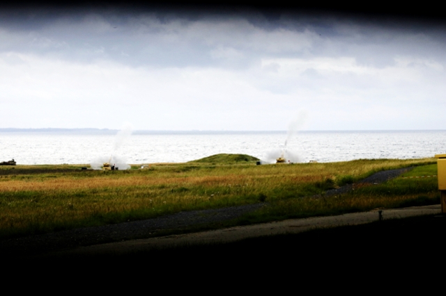 Für die Flugabwehrraketengruppe 61 (FlaRakGrp 61) ist es eine doppelte Premiere: erstmals wird mit MANTIS auf dem Truppenübungsplatz Putlos trainiert. Und zum ersten Mal können die FlaRak-Soldaten einen „Überschuss“ der Geschützreihe in das eigene Feldlager üben, weil Putlos genügend Fläche bietet. 70 Mann sind über die Schießbahn verteilt auf ihrem Posten. Oben auf dem Hügel steht die Bedien- und Feuerleitzentrale (BFZ). Quasi das Gehirn von MANTIS. Von außen ein schlichter Container, innen voll ausgestattet mit Computer-Technik. Im abgedunkelten Raum das Kampfführungsteam. Weiter unten im Übungsfeldlager zwei sogenannte Sensoreinheiten, die den Luftraum überwachen und feindliche Flugziele bis zum Schuss verfolgen. Eines direkt neben Bunker 3. Am Küstensaum dann vier Geschütze, jedes mit einer 35mm Revolverkanone. Und draußen auf See eine Hubinsel, die an eine Ölplattform erinnert. Von dort werden „feindliche“ Granaten oder Raketen mit Gips- oder Betonfüllung abgefeuert. Erst aus drei, dann aus 13 Kilometern Entfernung.