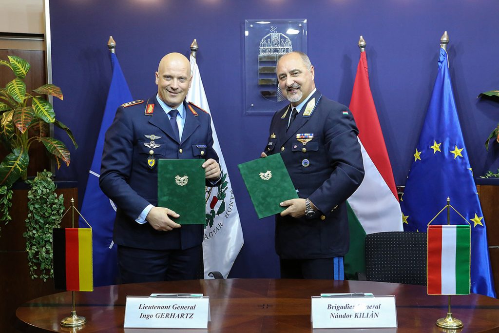 Beim zweitägigen Besuch des Inspekteurs der Luftwaffe, Generalleutnant Ingo Gerhartz, in Budapest unterzeichnete er mit dem Inspekteur der ungarischen Luftwaffe, Brigadegeneral Nandor Kilian, eine Vereinbarung zur Vertiefung der Zusammenarbeit beider Luftstreitkräfte. Auch die mögliche Beteiligung des NATO-Partners an der künftig auf dem Fliegerhorst Lechfeld mit dem A400M aufzustellenden, multinationalen Lufttransporteinheit war Teil der bilateralen Gespräche. „Ungarn ist für uns ein wichtiger NATO-Partner in Osteuropa“, so Gerhartz. „Ich freue mich, dass wir mit der heutigen Unterzeichnung dieser gemeinsamen Erklärung die bislang schon gute Zusammenarbeit weiter intensivieren und ausbauen können.“