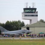Der Gedenkappell in der riesigen Halle der Instandhaltungs- und Elektronikstaffel ist sehr emotional und feierlich. Links und rechts vom Sarg stehen Piloten als Totenwache. Zu beiden Seiten wird das Ganze flankiert von zwei Eurofightern. Dahinter geht der Blick hinaus auf die Startbahn und den Tower.