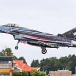 Plötzlich donnerten über unsere Köpfe zwei Eurofighter. Der zweite Eurofighter war ein Doppelsitzer. Vorne saß ein Pilot, hinter ihm sein Fluglehrer. Die Zweierformation war auf dem Weg nach Kaiserslautern. Dort befindet sich ein militärisches Übungsgebiet für Luftoperationen. So fand eine Übung im Eins-gegen-Eins-Luftkampf der deutschen gegen die belgischen Maschinen in luftiger Höhe statt. Der Eurofighter ist nicht komplett „Made in Germany“. Nur der Rumpf und die Finne werden in Deutschland produziert. Die Flügel werden in Italien und Spanien gefertigt. Auch Großbritannien wirkt am Waffensystem mit. Somit ist das Kampfflugzeug ein europäisches Projekt.