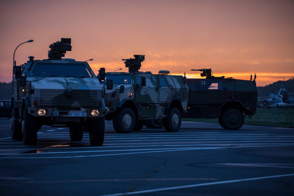 Langsam wird es Abend im Kommando Luftwaffe. Auch wenn es in dem einen Moment ruhig ist, muss das nicht so bleiben. Die Gefährdungsstufe der Kaserne bleibt angehoben. Es ist weiterhin mit einer Bedrohung von außen zu rechnen. Soldaten laufen mit ihren Waffen am Kasernenzaun Streife. Weiterhin passiert kein ziviles Fahrzeug die Wache.